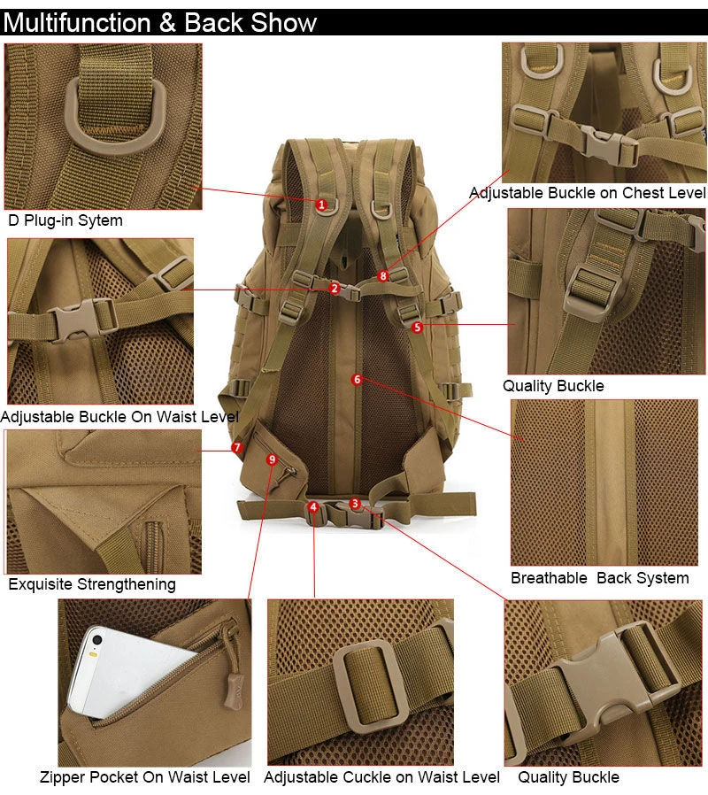 Product Name: Bowtac 60L Tactische Militaire Rugzak Camping Rugzak Grote Waterdichte Rugzak Camouflage Wandelen Outdoor Bag Mountain Rugzak